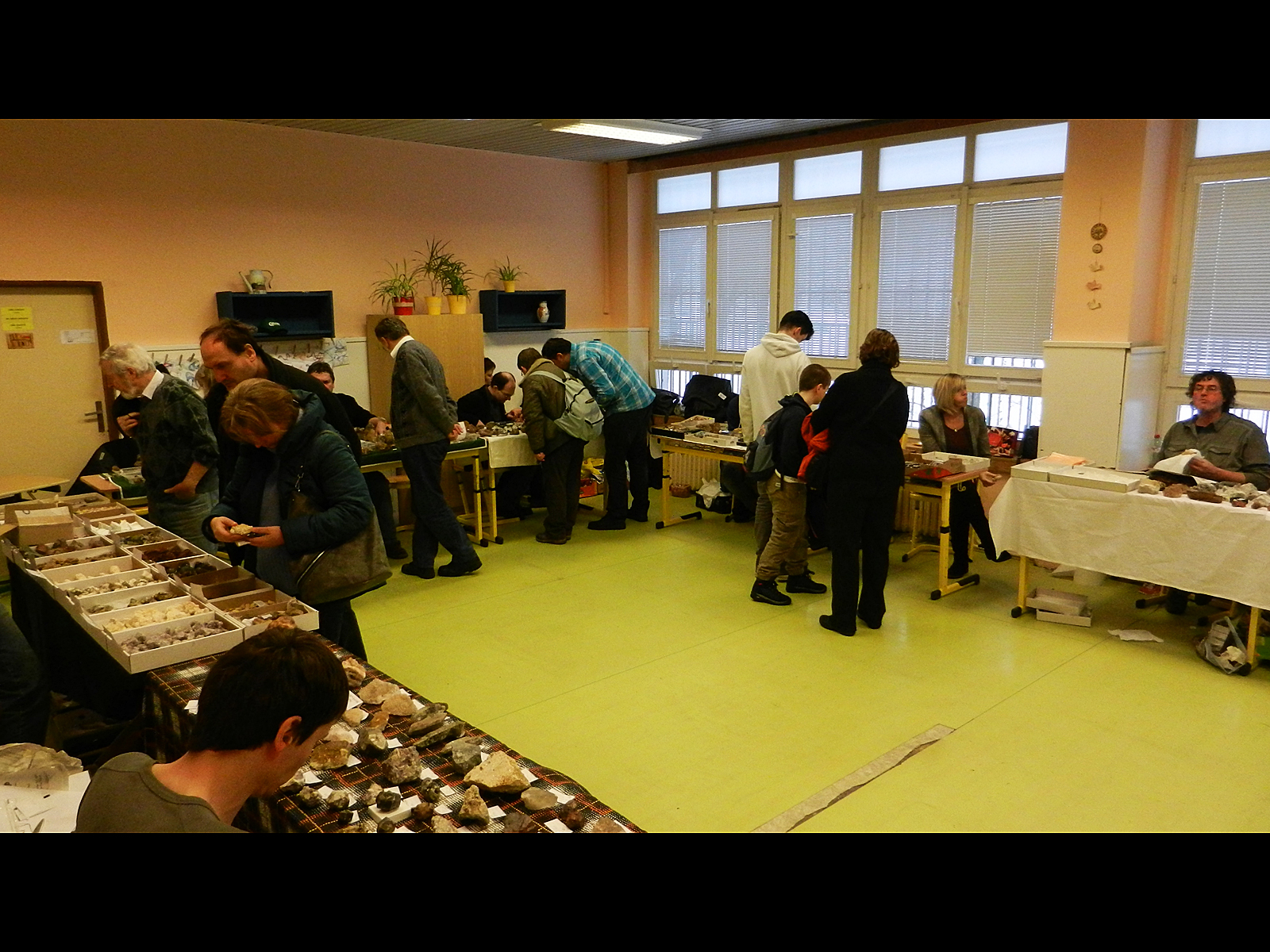 Na letošní burze jsme se rozhodli také vystavovat. Je to po dlouhé době, a tak jsme rozložili svůj stánek hned naproti hlavnímu vchodu. Marcel připravil nějaké minerály ze své sbírky a také několik krabic „přebytků“, které jsme na burze rozdávali zdarma začínajícím sběratelům… Krabice se tak docela rychle vyprazdňovaly a mnoho sběratelům udělaly dárky od Marcela velkou radost. Našlo se ale i pár jedinců, kteří ani nepoděkovali a dlouho se v krabicích jenom přehrabovali, aby pak chamtivě ukořistili ten nejhezčí vzorek… Na burzu jsme ale vzali i naše knihy a když se u stánku objevil Marcel, tak se hned kolem něj živě diskutovalo. Ostatně, diskutovalo se téměř všude! A tohle je snad největším přínosem amatérské burzy! Všude se diskutuje, šutráci se chlubí, plánují a sbližují se. Takže často dochází k plánování společných výprav na kameny a podobně…