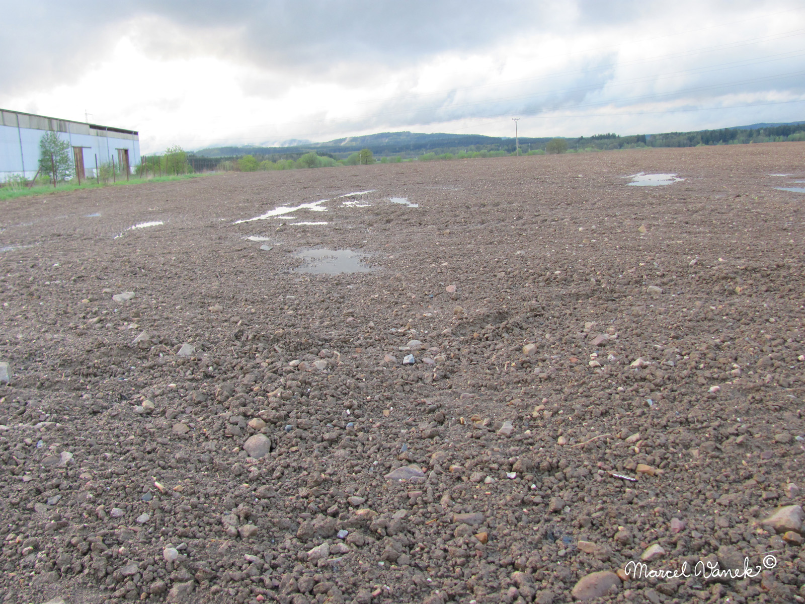 Hned u tohoto lesa je u obce další lokalita, kterou šutráci znají jako pole „U hřiště“, protože nedaleko je opravdu fotbalové hřiště (obr. 44). Tady se nalézá veliké množství pásikatých železáků a někdy i docela veliké kusy. Často se objevují i hvězdičky železitých hvězdovců a také acháty. Toto pole je hodně nadějné a dokáže překvapit různorodostí a pestrostí typů a forem železitých křemenů …
